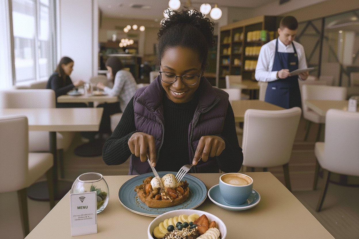 Healthy, stylish, slightly minimalist — the menu echoes a Nordic café philosophy. Smoothie bowls, yogurt parfaits, sandwiches, salads, and plenty of gluten-free or light options. Everything tastes clean and well-assembled, though not memorable enough to steal the spotlight from the coffee.