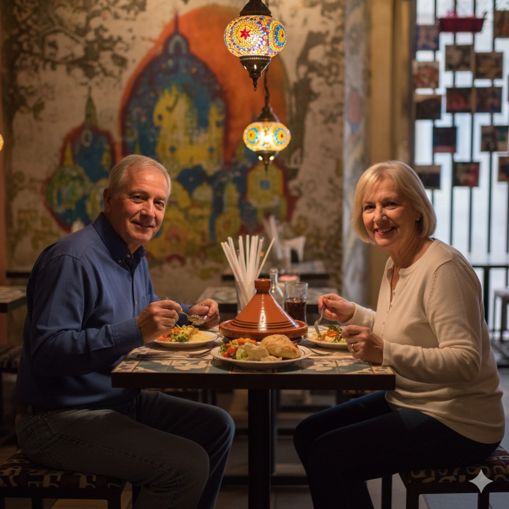 Sahara es un lugar imprescindible en el centro de la ciudad para disfrutar de la comida casera marroquí y árabe. Los tajines llegan burbujeantes y especiados, los platos de cuscús son aromáticos y abundantes, y las carnes a la parrilla están bien sazonadas y son generosas. Es un lugar cálido y relajado donde los sabores brillan y los precios siguen siendo accesibles, perfecto para estudiantes, visitantes de museos y exploradores del centro histórico.