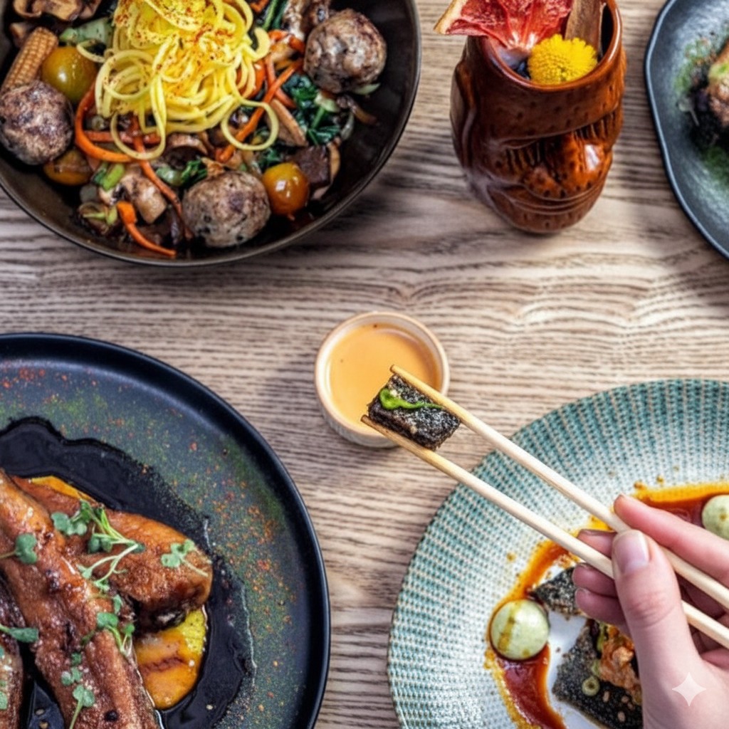 Watakushi es elegante, moderno y está pensado para noches que comienzan con makis y terminan con cócteles. Su menú se inclina por rollos creativos, platos pequeños de inspiración japonesa y platos coloridos con una presentación espectacular. Watakushi destaca por combinar una buena técnica con un toque visual: texturas crujientes, salsas dulces y saladas y platos llamativos.