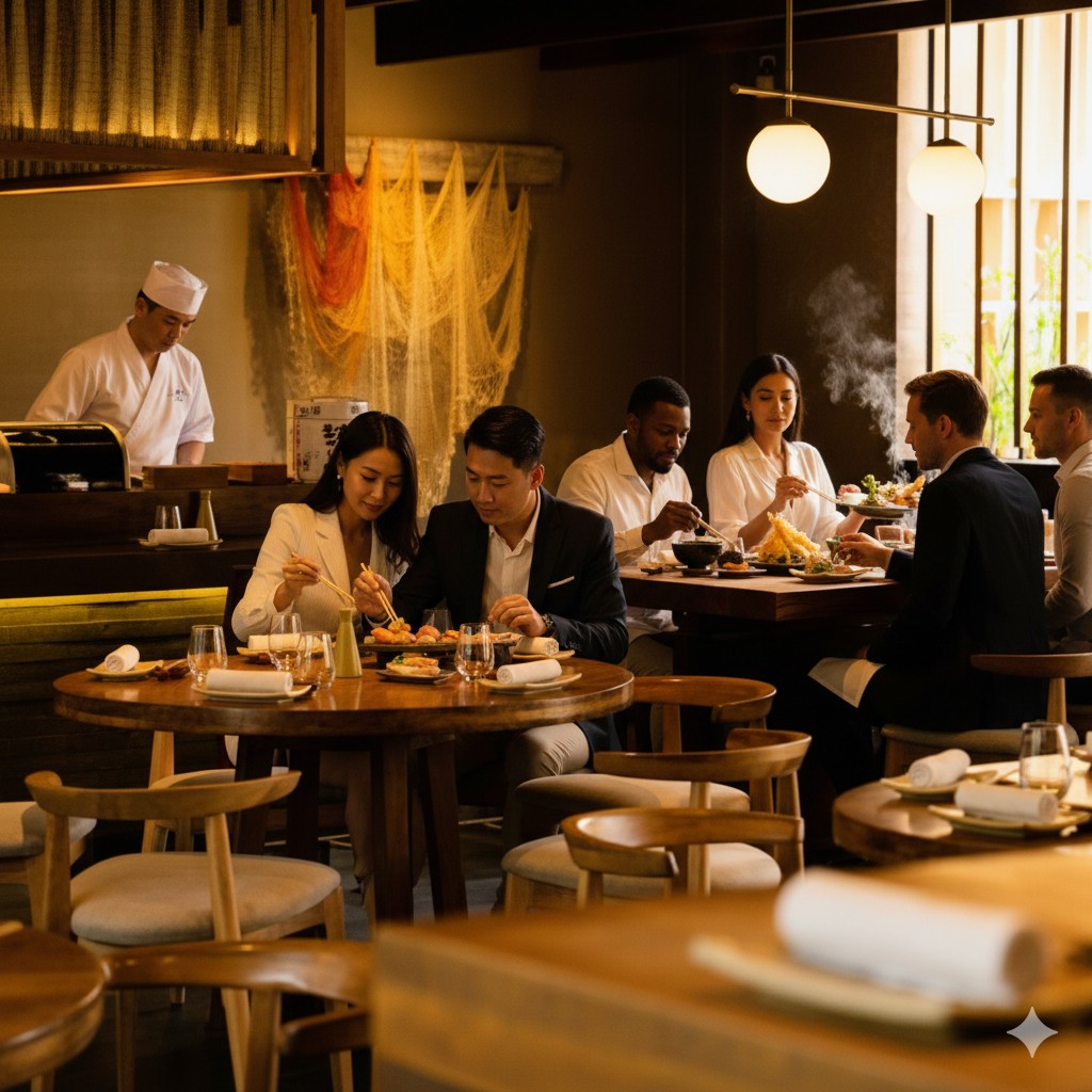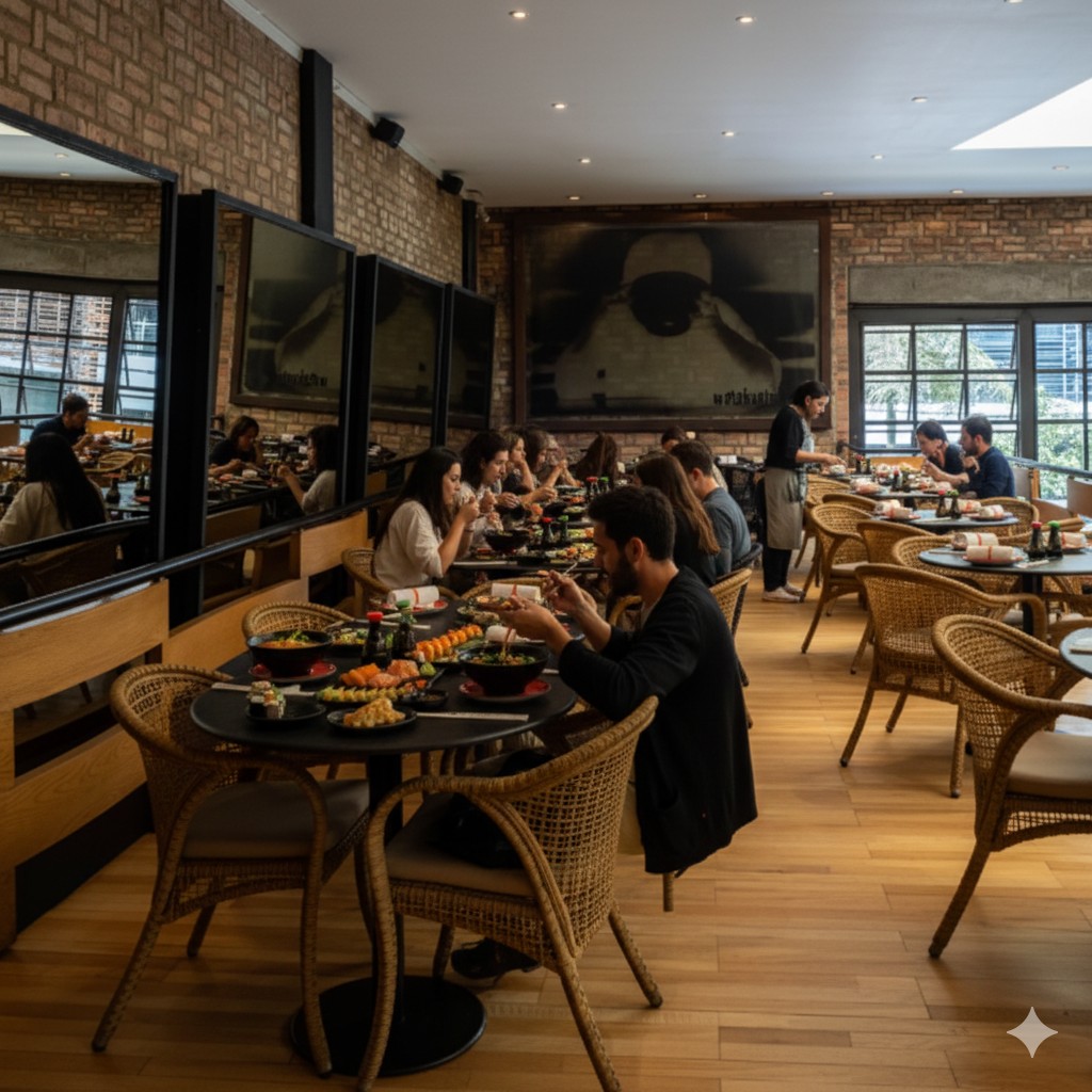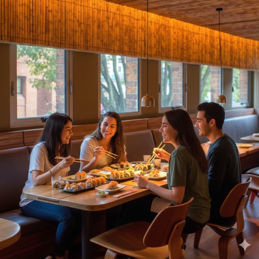 Encontrarás parejas en citas, grupos celebrando y muchos comensales que buscan algo delicioso sin ser demasiado formales. Es contemporáneo, animado y claramente bogotano en su enfoque de la cocina japonesa.