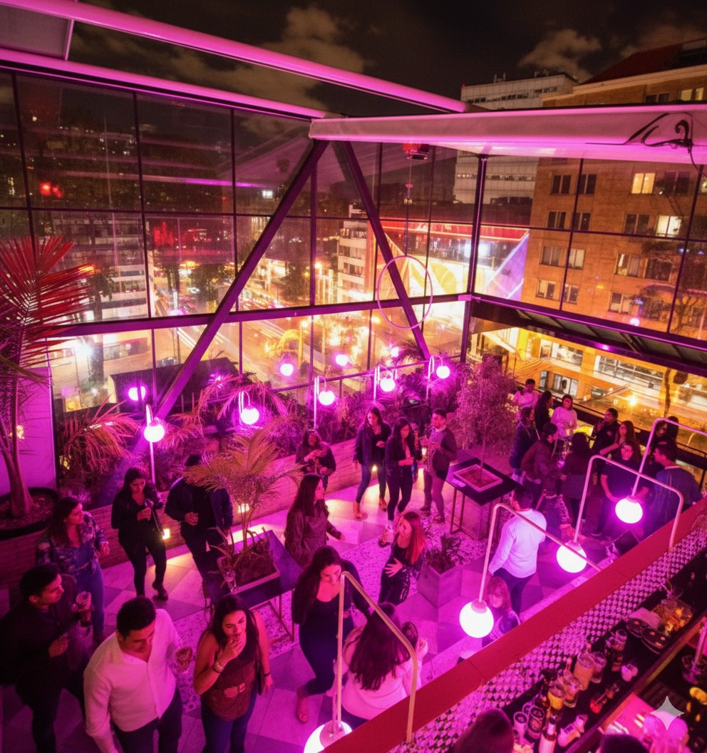 Early in the evening, the vibe is more laid back—ideal for conversation, cocktails, and soaking in the view. As the night progresses (especially after 10:30 or 11 PM), the mood shifts into full-on party mode. Music grows louder, the dance floor tightens, and the rooftop turns into one of Bogotá’s higher-energy nightlife scenes.