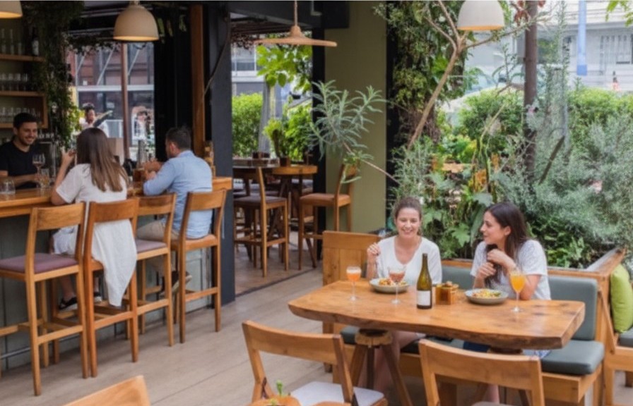 Sound is curated: ambient music with a little edge (jazz, mellow electronic, Latin fusion), volume set so you hear your companion, not shout. The spacing, the layout, and seating arrangements feel intentional.