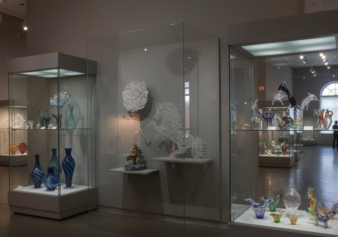 A museum built around glass as craft and millenary storytelling. Handmade, glowing exhibitions.