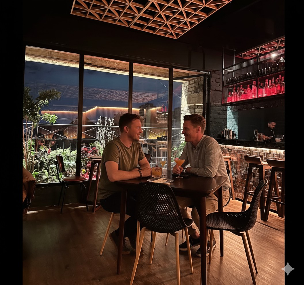 The design leans sleek and contemporary—think dark wood, industrial-chic lighting, minimalist décor, and just the right amount of neon glow from the bar. Music is always part of the scene—low enough for conversation, upbeat enough to keep the energy going. And there’s usually a subtle shift from “cocktail bar” to “social lounge” as the night deepens.