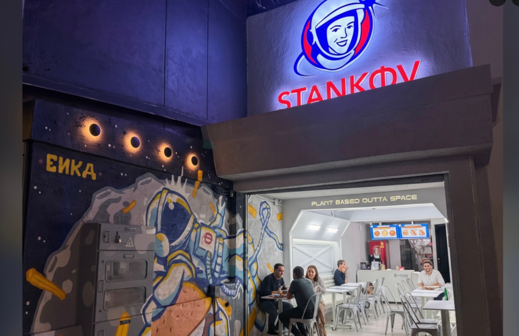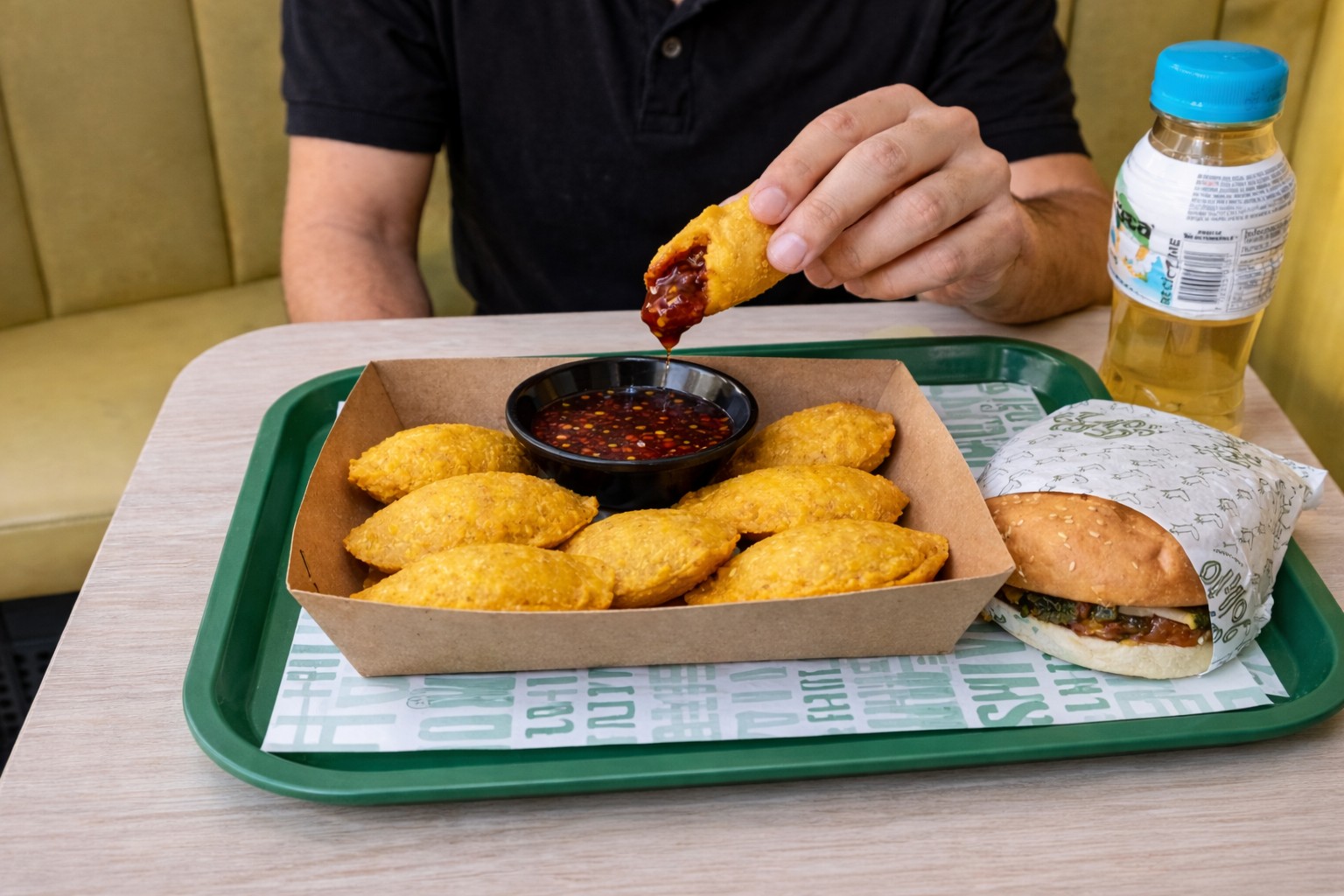 Where Bogotá’s youth goes when they want something loud and unapologetic. Neon menus, American-style burgers, “meteoritos” nuggets, fries — the whole point here is that nothing feels restrictive. This is vegan — and nobody says the word vegan out loud.