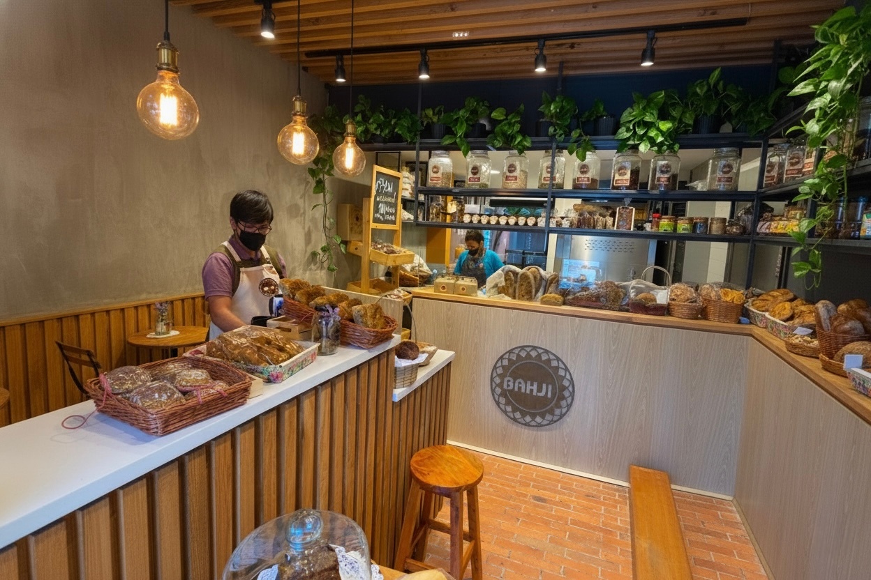 Vegan sourdough might sound cliché until you try Bahji. Their Atelier and Nogal shops are always full — bags of chickpea-ferment breads, brownies with tahini undertones, and baristas who know names. The brand expanded into legume-based “Veggie Beans” — showing Bogotá that vegan doesn’t need to be substitute-food — it can be its own world.